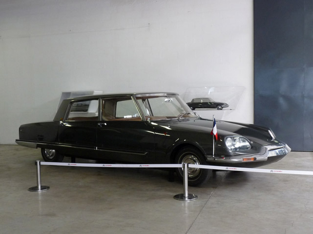 Et pour terminer, la monumentale DS présidentielle de De Gaulle, qu’il aura finalement peu utilisé car, disait-il, la vitre de séparation fixe l’empêchait de converser librement avec son chauffeur. A noter que la photographie a du mal à rendre compte de ses dimensions réelles.