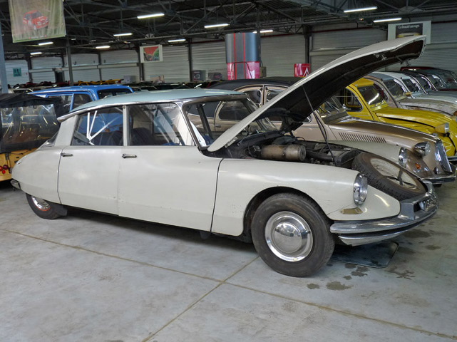 Mais la pièce maîtresse de la collection, c’est ce modèle de pré-série, qui en fait la plus vielle DS connue à l’heure actuelle, et qui est conservé ici dans son jus (jus qui d’ailleurs s’écoule abondamment du moteur, à en croire les tâches sur le sol).