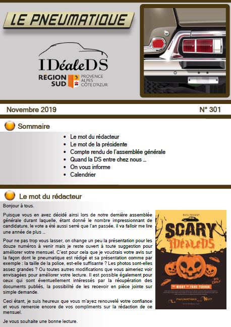 Vous trouverez sous le lien suivant le n°301 du Pneumatique du mois de Novembre. Bonne lecture.